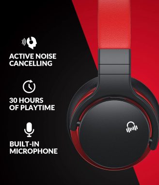 MOVSSOU E7 Active Noise Cancelling Headphones Bluetooth Headphones Wireless Headphones Over Ear with Microphone Deep Bass, Comfortable Protein Earpads, 30 Hours Playtime for Travel/Work, Black